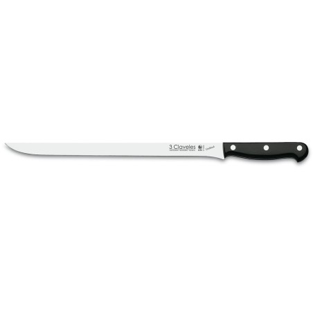 Cuchillo largo y delgado con hoja flexible y filo liso, especial para cortar jamón y otras piezas de carne.