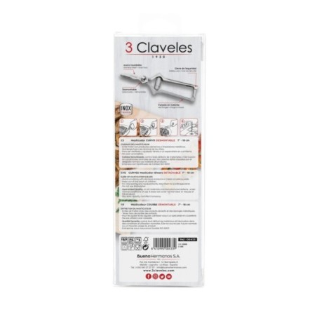 - De acero Inoxidable, fácil y seguro de usar, gracias al resorte central y cierre de seguridad.